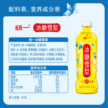 统一 冰糖雪梨(梨汁饮料) 500ml*15瓶 整箱装