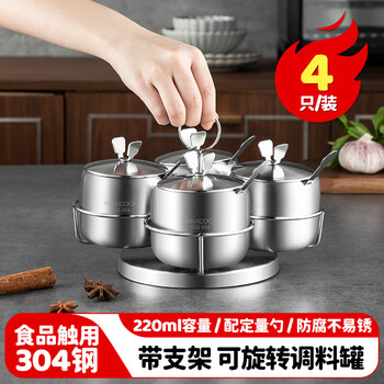 美厨(maxcook)304不锈钢调味罐 调料盒调料罐调味盒四件套 带支架MCPJ-WG004