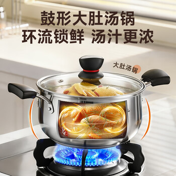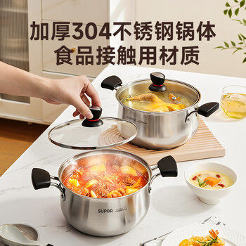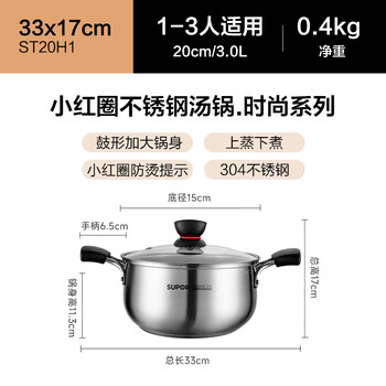 苏泊尔SUPOR 小红圈304不锈钢汤锅奶锅煮面锅20cm复底通用ST20H1