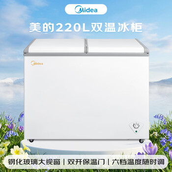 美的(Midea)220L双温双箱家商两用冰柜展示柜雪糕柜大容量冷柜保鲜玻璃门冷藏冷冻两用卧式冰箱BCD-220VM(E)