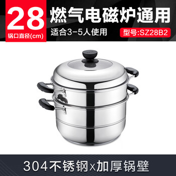 苏泊尔SUPOR 易存储304不锈钢双层复底28cm蒸锅高拱盖汤锅蒸笼SZ28B2