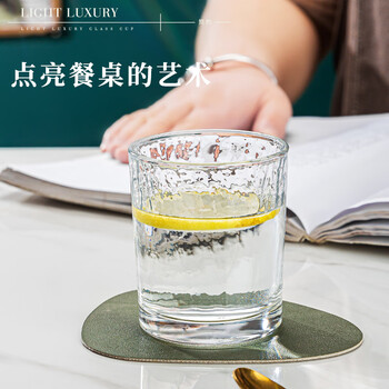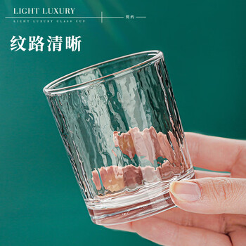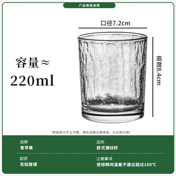 青苹果耐热玻璃水杯咖啡杯220ml6只 家用冰川锤纹茶杯洋酒杯啤酒杯