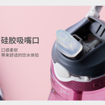 contigo单层运动吸管杯夏季户外大容量运动水杯1000ml酒红HBC-ASH133