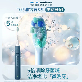 飞利浦(PHILIPS)声波电动牙刷钻石3系 生日礼物情侣款送男生女友微泡水流HX5181/02 蓝色