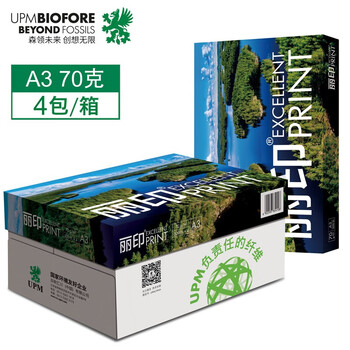 UPM丽印湖光 A3打印纸 70克500张*4包一箱 绘画制图a3复印纸 手抄报画纸 整箱2000张【热销爆款】
