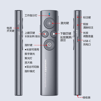 诺为激光笔 PPT翻页笔教师用LED液晶屏放大凸显 数字激光 飞鼠 充电款 红光 N95s Pro 64G