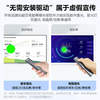 诺为激光笔 PPT翻页笔教师用LED液晶屏放大凸显 数字激光 飞鼠 充电款 绿光 N95s Pro 64G
