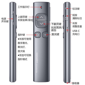 诺为N96s 双激光翻页笔教师用液晶屏led无线演示器 数字激光 飞鼠PPT充电投影带32G U盘 红光