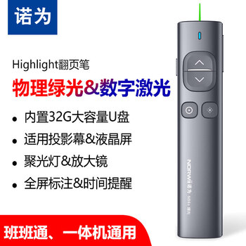 诺为 N96s 双激光翻页笔教师用 液晶屏led放大凸显无线演示器 数字激光 PPT充电投影32G U盘 绿光