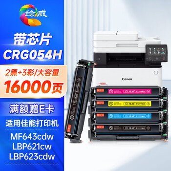 绘威mf643cdw硒鼓CRG054H 适用佳能MF645Cx打印机墨盒 LBP621Cw LBP623cdn/cdw MF641cw MF642cdw粉盒 2黑3彩