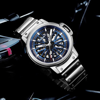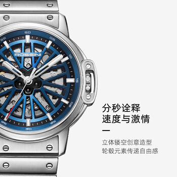 罗西尼(ROSSINI)手表男机械表勋章蓝盘钢带生日礼物送男友国表镂空夜光 520999