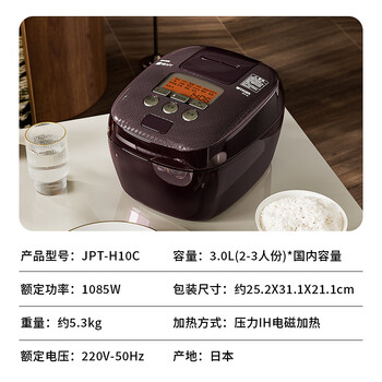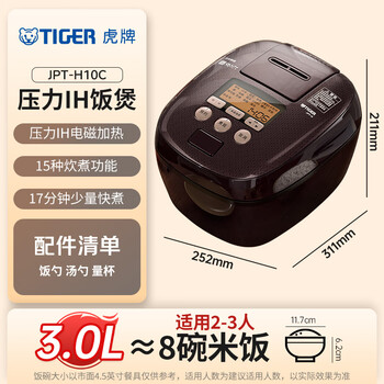 虎牌(TIGER)电饭煲 Pro 智能压力IH日本进口土锅涂层压力电饭煲2-3人深棕色 3LJPT-H10C