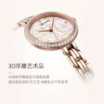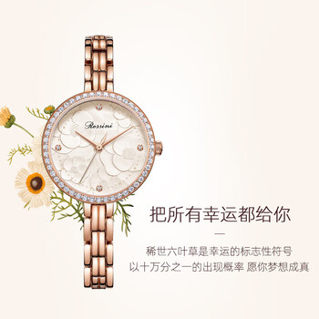 罗西尼(ROSSINI)手表女石英表粉盘钢带生日礼物送女友国表气质时尚山茶花 519984