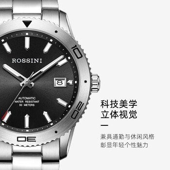 罗西尼(ROSSINI)手表男款 男士手表生日礼物运动夜光机械表黑盘钢带519949