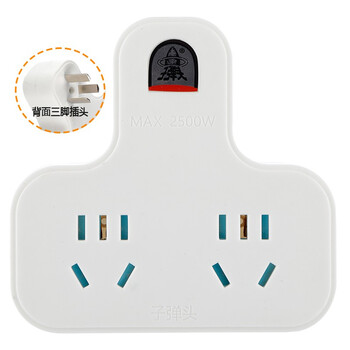 子弹头 TS-555NK 一转二插座/一转多插座/电源转换器/转换插头/品字型插座/2位无线插座/无开关转换插板