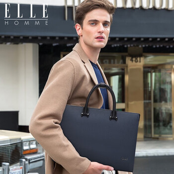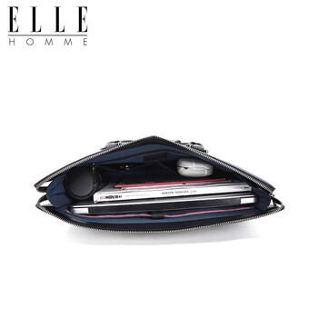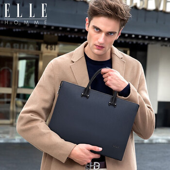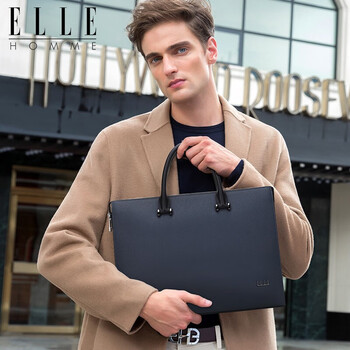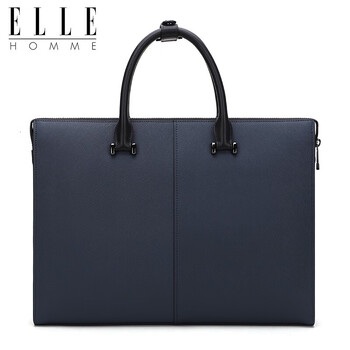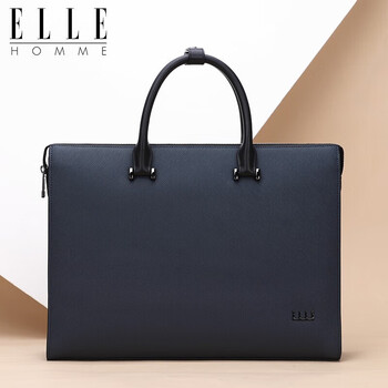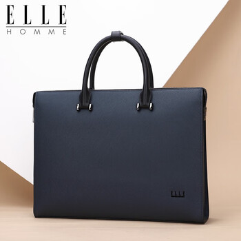 ELLE HOMME男士商务公文包 个性时尚横款牛皮手提包 大容量电脑包男包EA088208911蓝色