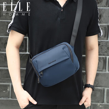 ELLE HOMME男士单肩包 潮流轻便帆布斜挎包 防泼水休闲手机包男包08333蓝色生日礼物送男友