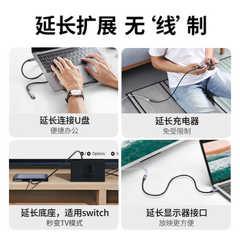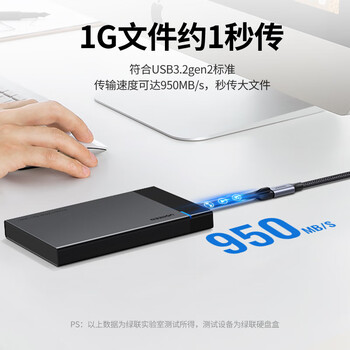 绿联Type-C延长线公对母USB3.2Gen2全功能数据线PD100W快充兼容雷电4/3显示器4K投屏传输适用苹果华为