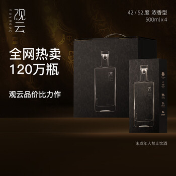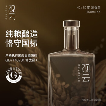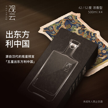 观云出东方 浓香型白酒 42度 500ml*4瓶 整箱装 含礼袋*2 节日送礼