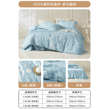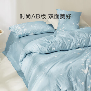 罗莱家纺100%纯棉床上四件套 ins风床单被套双人套件 220*250cm