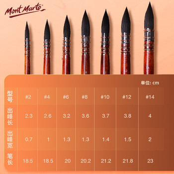 蒙玛特(Mont Marte)水粉笔7支装 松鼠毛水彩画笔水彩画画笔美术颜料绘画笔 圆头排笔套装V SX-MPB0157-0163速写素描