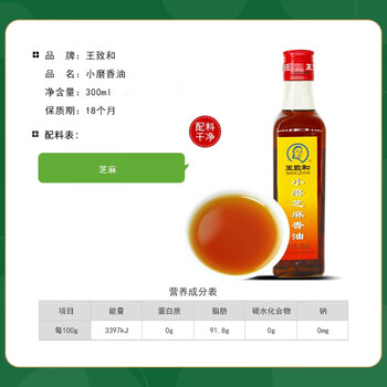 王致和小磨香油300ml 纯香油麻油 火锅蘸料调料