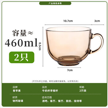 青苹果玻璃杯茶杯牛奶杯大容量早餐燕麦杯麦片碗450ML2只装