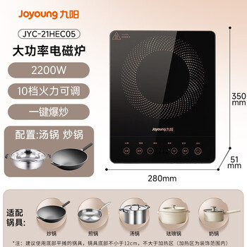 九阳(Joyoung)电磁炉电陶炉电池炉电磁灶2200W大功率一键爆炒家用防水火锅一套带锅十档火力定时功能JYC-21HEC05