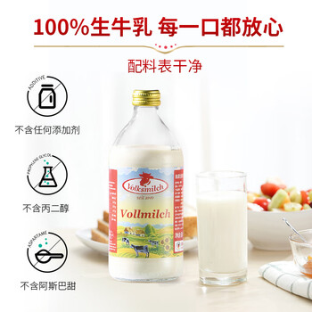 德质(Volksmilch)全脂纯牛奶490ml*6瓶年货送礼 原瓶进口牛奶礼盒装