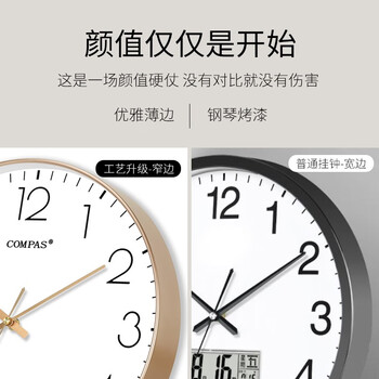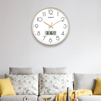 康巴丝(Compas)挂钟客厅钟表 万年历简约石英钟表挂墙时钟 C3242Y 轻奢金色 28cm