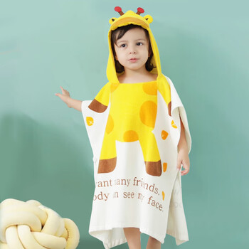 爱宝适儿童浴巾纯棉男女童沙滩浴衣斗篷连帽款宝宝洗澡浴袍长颈鹿 S191