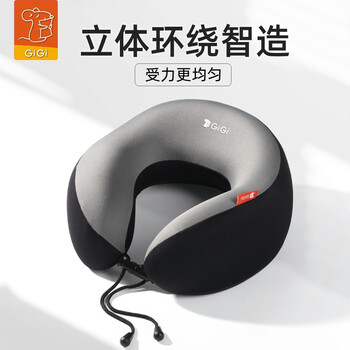 GiGi U型枕护颈枕记忆棉飞机旅行汽车头枕午睡午休枕头靠枕头灰色