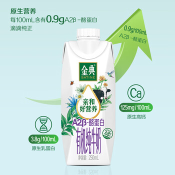 伊利 金典A2β-酪蛋白有机纯牛奶 中欧有机认证 亲和好营养 礼盒装 250ml*10盒/箱