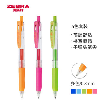 斑马牌(ZEBRA)按动中性笔 0.3mm子弹头啫喱笔水笔 财务会计记账专用签字笔 JJH15-5CA 5色套装