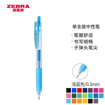 斑马牌(ZEBRA)按动中性笔 0.3mm子弹头啫喱笔水笔 财务会计记账专用签字笔 JJH15 浅蓝色