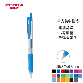 斑马牌(ZEBRA)按动中性笔 0.3mm子弹头啫喱笔水笔 财务会计记账专用签字笔 JJH15 粉蓝色