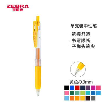 斑马牌(ZEBRA)按动中性笔 0.3mm子弹头啫喱笔水笔 财务会计记账专用签字笔 JJH15 黄色