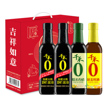 千禾匠心酿造礼盒【0添加】 酱油500ml*2+料酒500ml+香醋 500ml