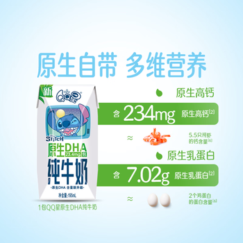 伊利 QQ星原生DHA儿童纯牛奶 限定牧场儿童成长牛奶纯奶学生营养早餐搭档 195ml*12盒/箱