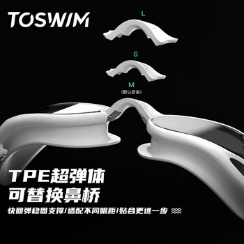 TOSWIM拓胜泳镜高清防雾防水大框镀膜眼镜男士女士游泳镜 白色银光