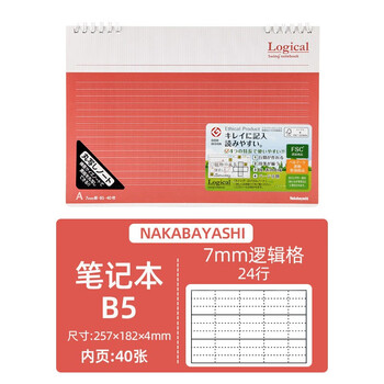 Nakabayashi仲林笔记本B5/40张横板线圈本逻辑格防咯手记事本 橘色 7mm行距