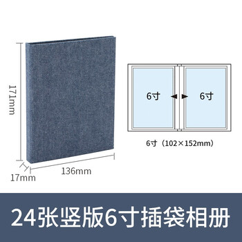 Nakabayashi仲林插页式相册本24张6寸/布艺插袋式家庭影集/竖版相册簿 蓝色 A-COPK-241B照片书