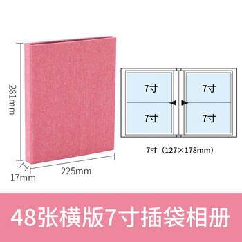 Nakabayashi仲林插页式相册本48张7寸/布艺插袋式家庭影集/横版相册簿 A-COP2L-480P 粉色照片书