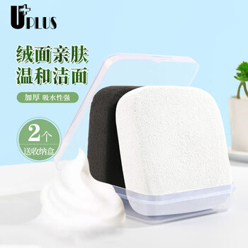 优家(UPLUS)绒面加厚洗脸扑洁面扑洗脸绵洗脸海绵(牛奶+竹炭)2个含盒