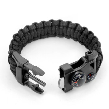 paulone 十五种功能手链手绳伞绳登山绳 带指南针打火棒工具卡SS1002黑色