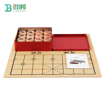 劲邦象棋中国象棋铁盒装实木大号榉木高档雕花50号pu皮革象棋盘JB0058