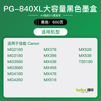 得印PG-840XL墨盒 黑色 适用佳能MG3680 MG3580 MG3180 TS5180 MX538 MX398 MG4180 MG4280 MG2180打印机