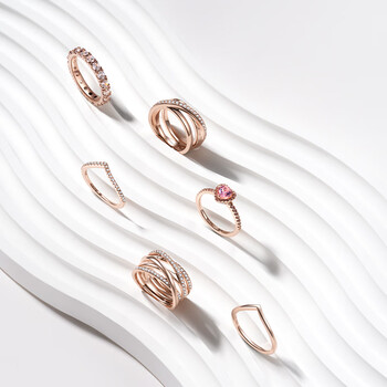 潘多拉(PANDORA)交缠戒指玫瑰金色不对称编织线条时尚优雅生日礼物送女友
