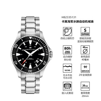 汉米尔顿(Hamilton)汉密尔顿手表男士瑞士机械潜水表 卡其海军水肺40黑盘钢带腕表