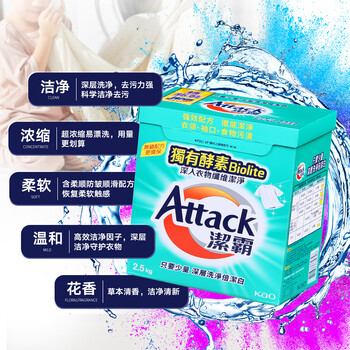 花王(KAO)洁霸洗衣粉深层清洁2.5kg( 酵素洁净 机洗手洗适用)